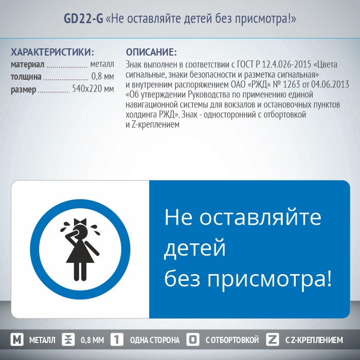 Знак «Не оставляйте детей без присмотра!», GD22-G (односторонний горизонтальный, 540х220 мм, металл, с отбортовкой и Z-креплением) в Сургуте купить