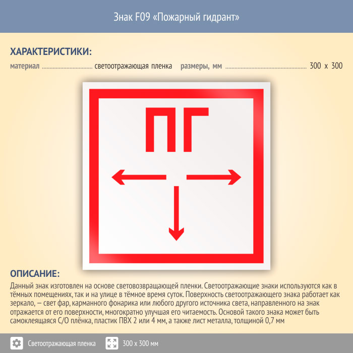 Знак F09 «Пожарный гидрант» (светоотражающая пленка, 300х300 мм) в Сургуте купить