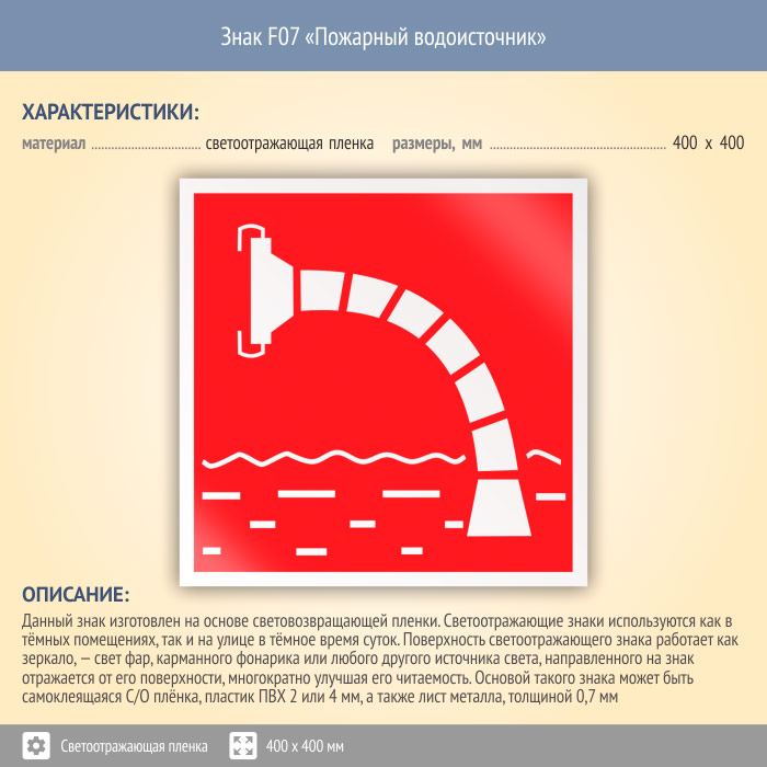 Знак F07 «Пожарный водоисточник» (светоотражающая пленка, 400х400 мм) в Сургуте купить