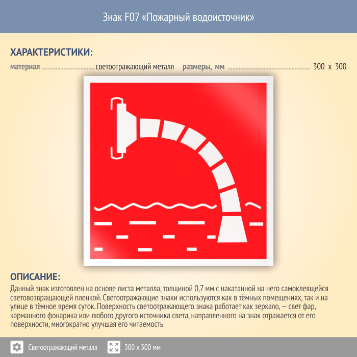 Знак F07 «Пожарный водоисточник» (светоотражающий металл, 300х300 мм) в Сургуте купить
