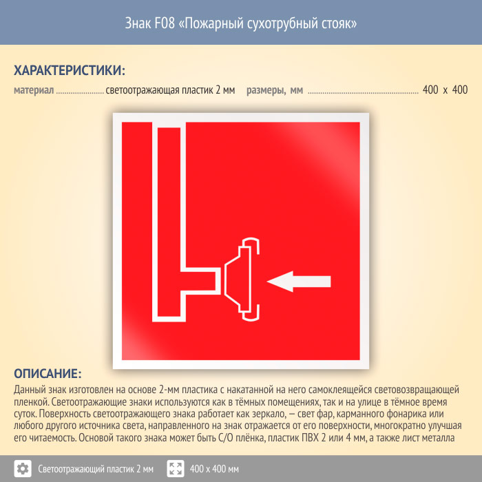 Знак F08 «Пожарный сухотрубный стояк» (светоотражающий пластик, 400х400 мм) в Сургуте купить