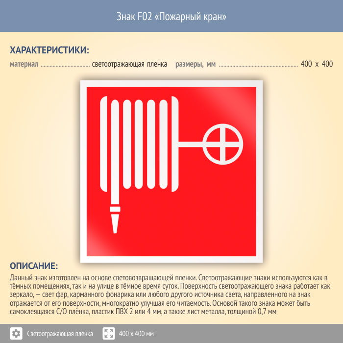 Знак F02 «Пожарный кран» (светоотражающая пленка, 400х400 мм) в Сургуте купить
