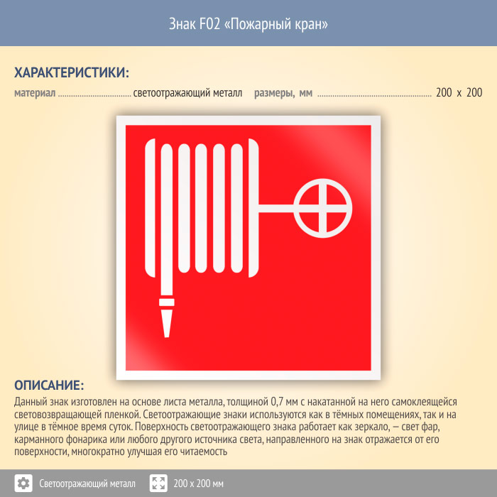 Знак F02 «Пожарный кран» (светоотражающий металл, 200х200 мм) в Сургуте купить