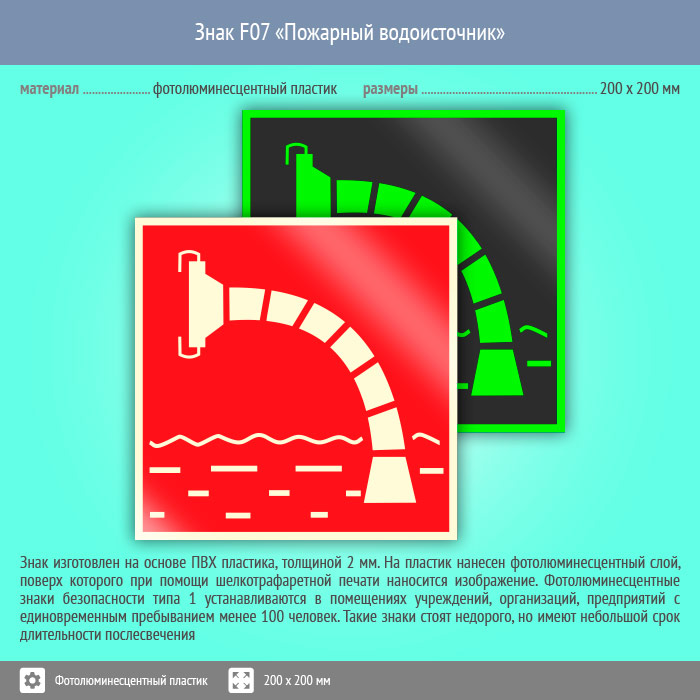 Знак F07 «Пожарный водоисточник» (фотолюминесцентный пластик, 200х200 мм) в Сургуте купить