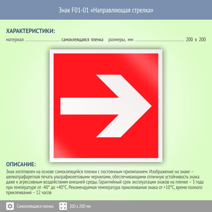 Знак F01-01 «Направляющая стрелка» (пленка, 200х200 мм) в Сургуте купить
