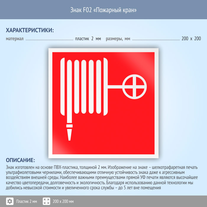 Знак F02 «Пожарный кран» (пластик, 200х200 мм) в Сургуте купить