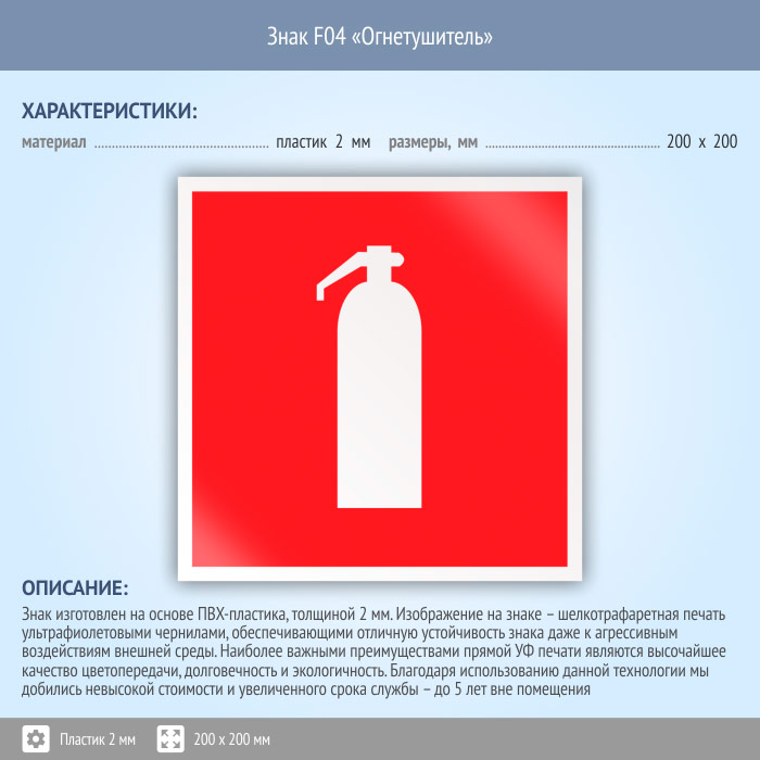Знак F04 «Огнетушитель» (пластик, 200х200 мм) в Сургуте купить