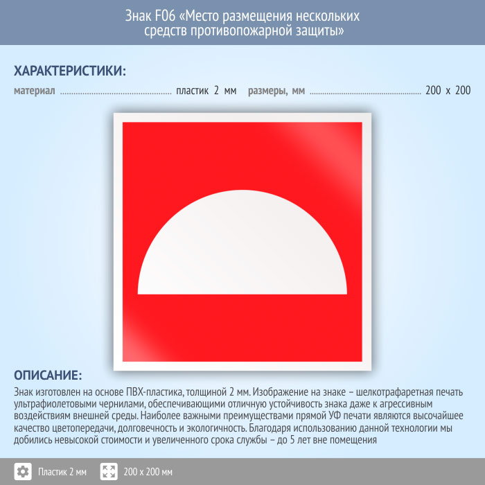 Знак F06 «Место размещения нескольких средств противопожарной защиты» (пластик, 200х200 мм) в Сургуте купить
