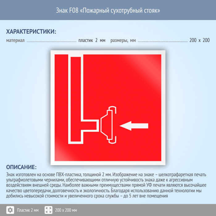 Знак F08 «Пожарный сухотрубный стояк» (пластик, 200х200 мм) в Сургуте купить