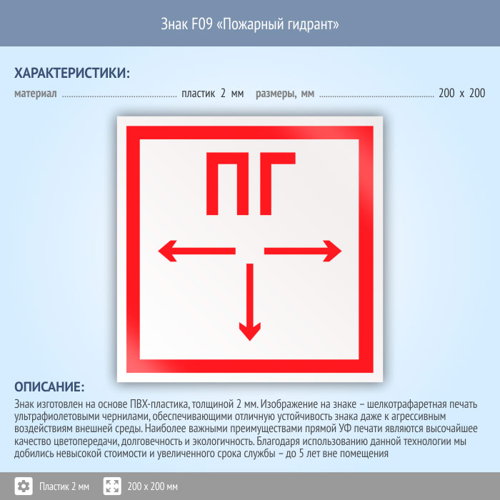 Знак F09 «Пожарный гидрант» (пластик, 200х200 мм) в Сургуте купить