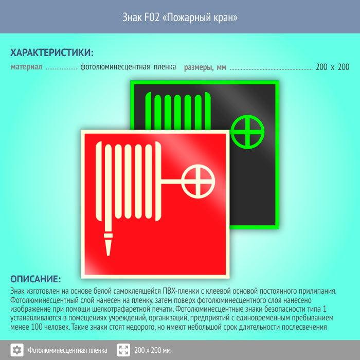 Знак F02 «Пожарный кран» (фотолюминесцентная пленка, 200х200 мм) в Сургуте купить