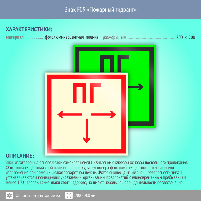 Знак F09 «Пожарный гидрант» (фотолюминесцентная пленка, 200х200 мм) в Сургуте купить