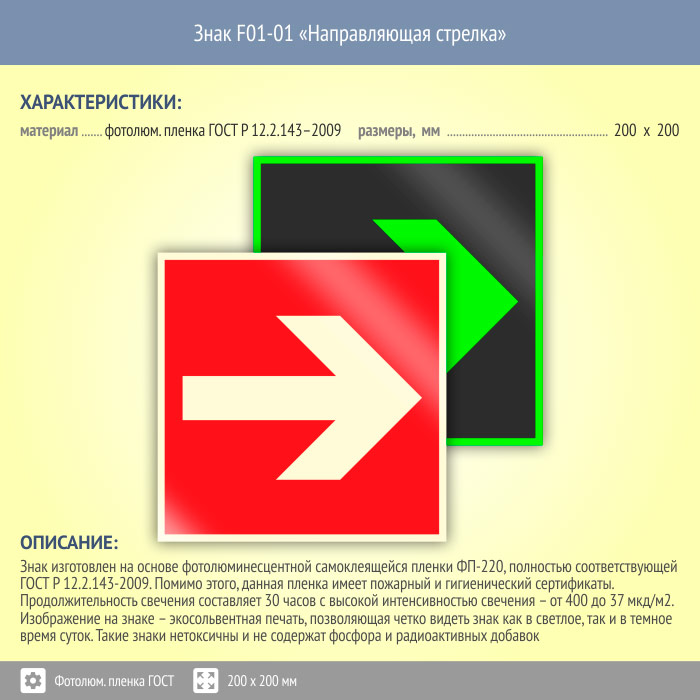Знак F01-01 «Направляющая стрелка» (фотолюминесцентная пленка ГОСТ 34428-2018, 200х200 мм) в Сургуте купить