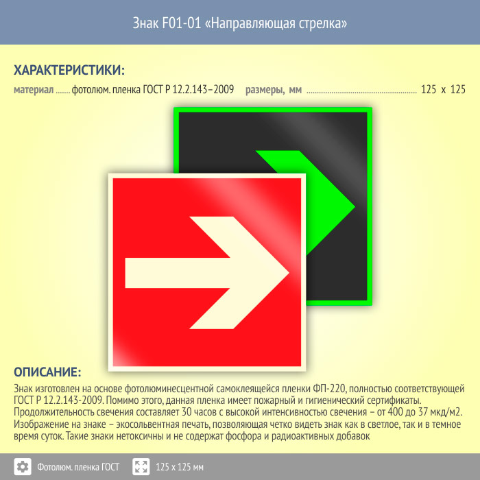 Знак F01-01 «Направляющая стрелка» (фотолюминесцентная пленка ГОСТ 34428-2018, 125х125 мм) в Сургуте купить