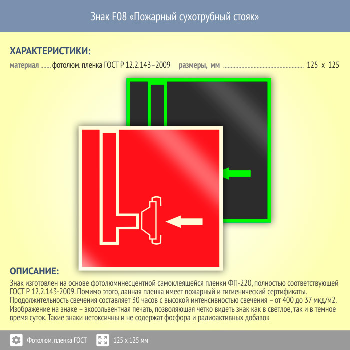 Знак F08 «Пожарный сухотрубный стояк» (фотолюминесцентная пленка ГОСТ 34428-2018, 125х125 мм) в Сургуте купить
