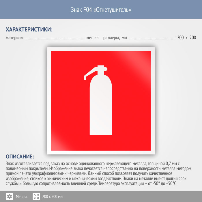 Знак F04 «Огнетушитель» (металл, 200х200 мм) в Сургуте купить