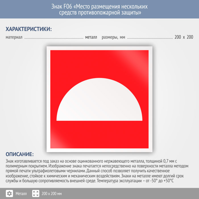 Знак F06 «Место размещения нескольких средств противопожарной защиты» (металл, 200х200 мм) в Сургуте купить