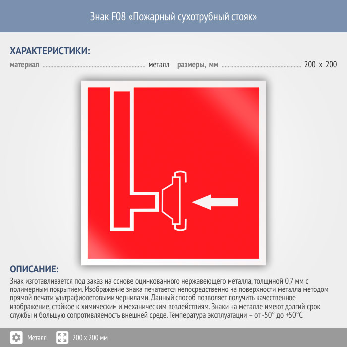 Знак F08 «Пожарный сухотрубный стояк» (металл, 200х200 мм) в Сургуте купить