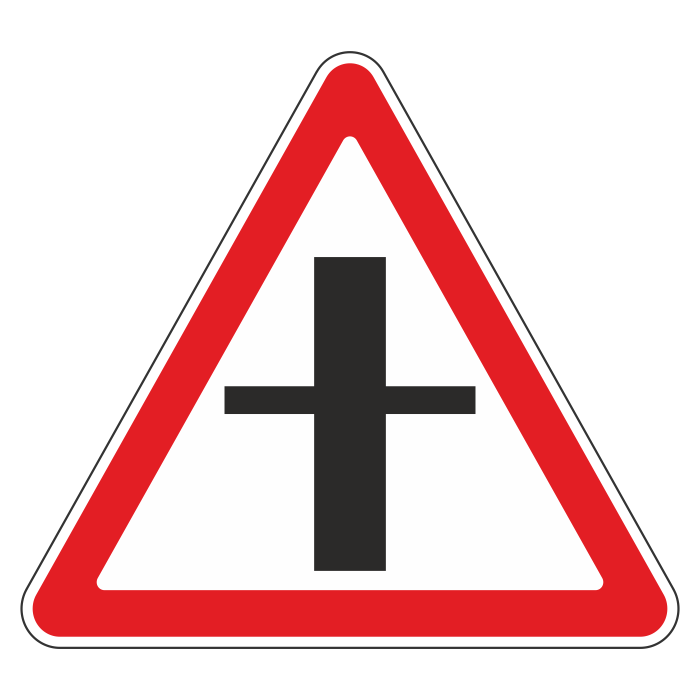 Дорожный знак 2.3.1 «Пересечение со второстепенной дорогой» (металл 0,8 мм, II типоразмер: сторона 900 мм, С/О пленка: тип А инженерная) в Сургуте купить