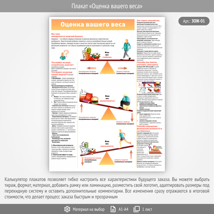Плакат «Оценка вашего веса» (ЗОЖ-01, 1 лист) в Сургуте купить