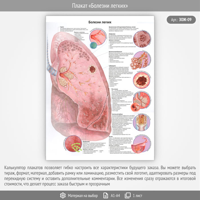 Плакат «Болезни легких» (ЗОЖ-09, 1 лист) в Сургуте купить