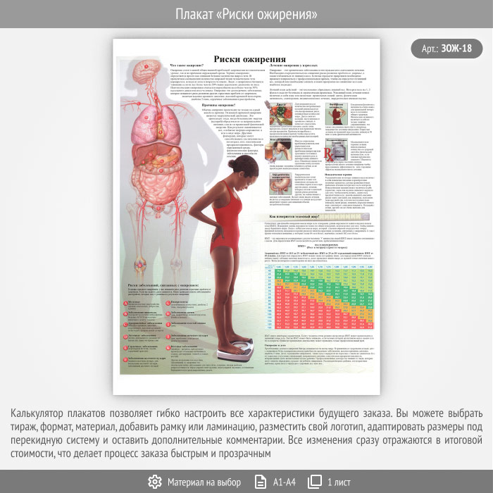 Плакат «Риски ожирения» (ЗОЖ-18, 1 лист) в Сургуте купить
