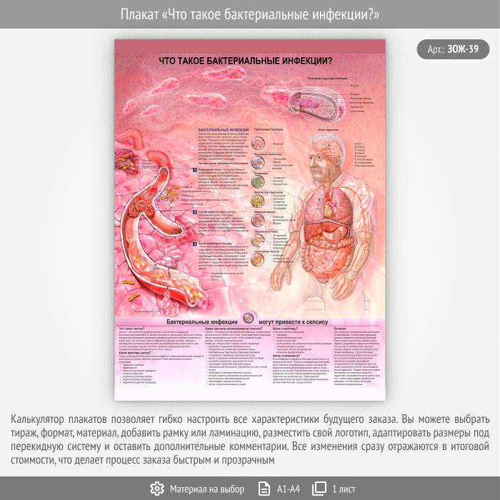 Плакат «Что такое бактериальные инфекции?» (ЗОЖ-39, 1 лист) в Сургуте купить